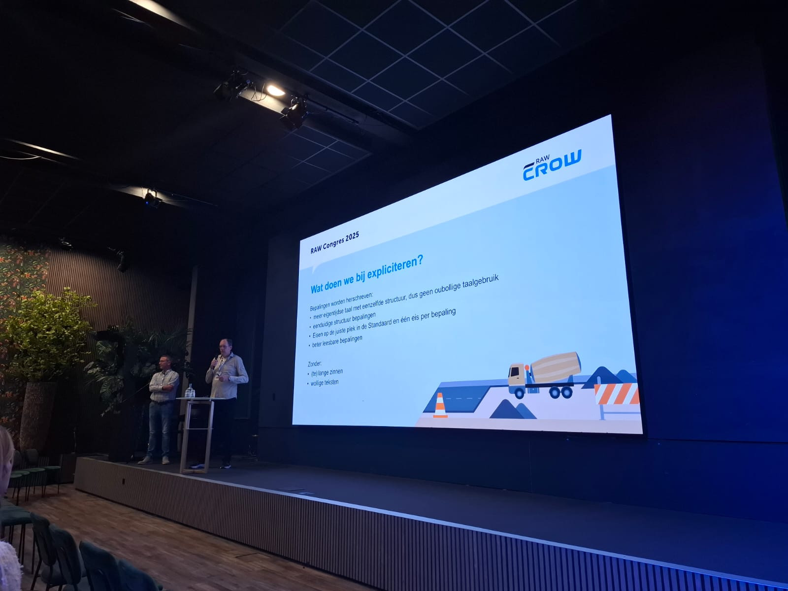De dag begon met de lancering van de Standaard RAW Bepalingen 2025. De nieuwe cover werd officieel onthuld door Jacques Teunissen en Lars Birkholz van het RAW-team. CROW-directeur Pieter Litjens reikte vervolgens de eerste exemplaren uit aan Ron Wesseling, Meriam de Koning en André Houtepen. Met hun rollen in respectievelijk de RAW-Raad, de Juridische en Bestekstechnische Commissie en als veelvuldig werkgroeplid, hebben zij een grote bijdrage geleverd aan de totstandkoming van de nieuwe RAW Jaarversie. Tijdens deze opening werd stilgestaan bij het belang dat RAW na ruim 50 jaar nog steeds heeft voor de sector, met name door de pariteit: de gelijkwaardige vertegenwoordiging van opdrachtgevers en aannemers.